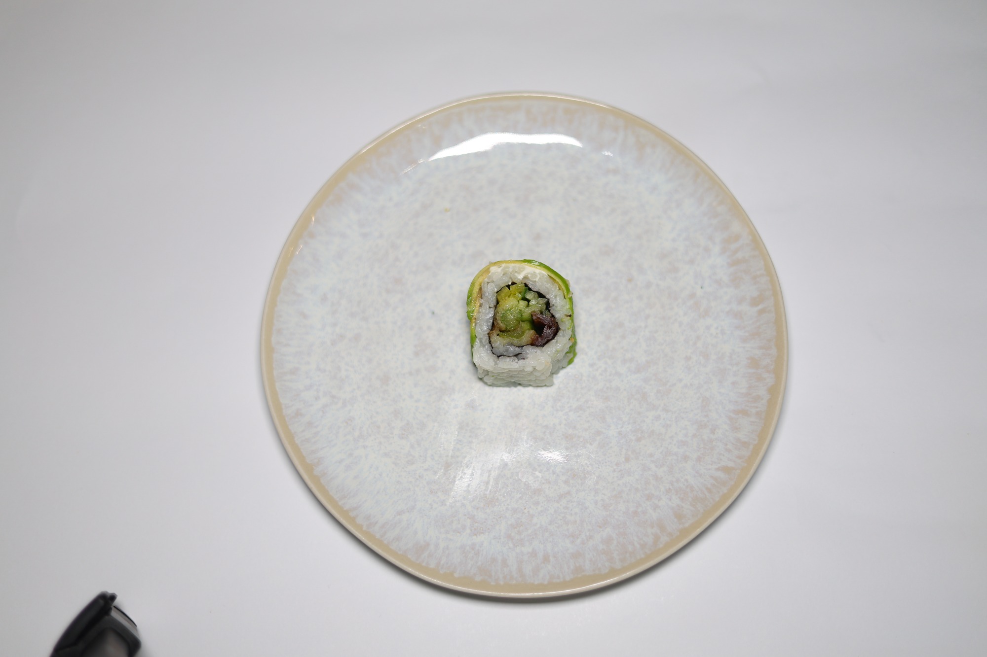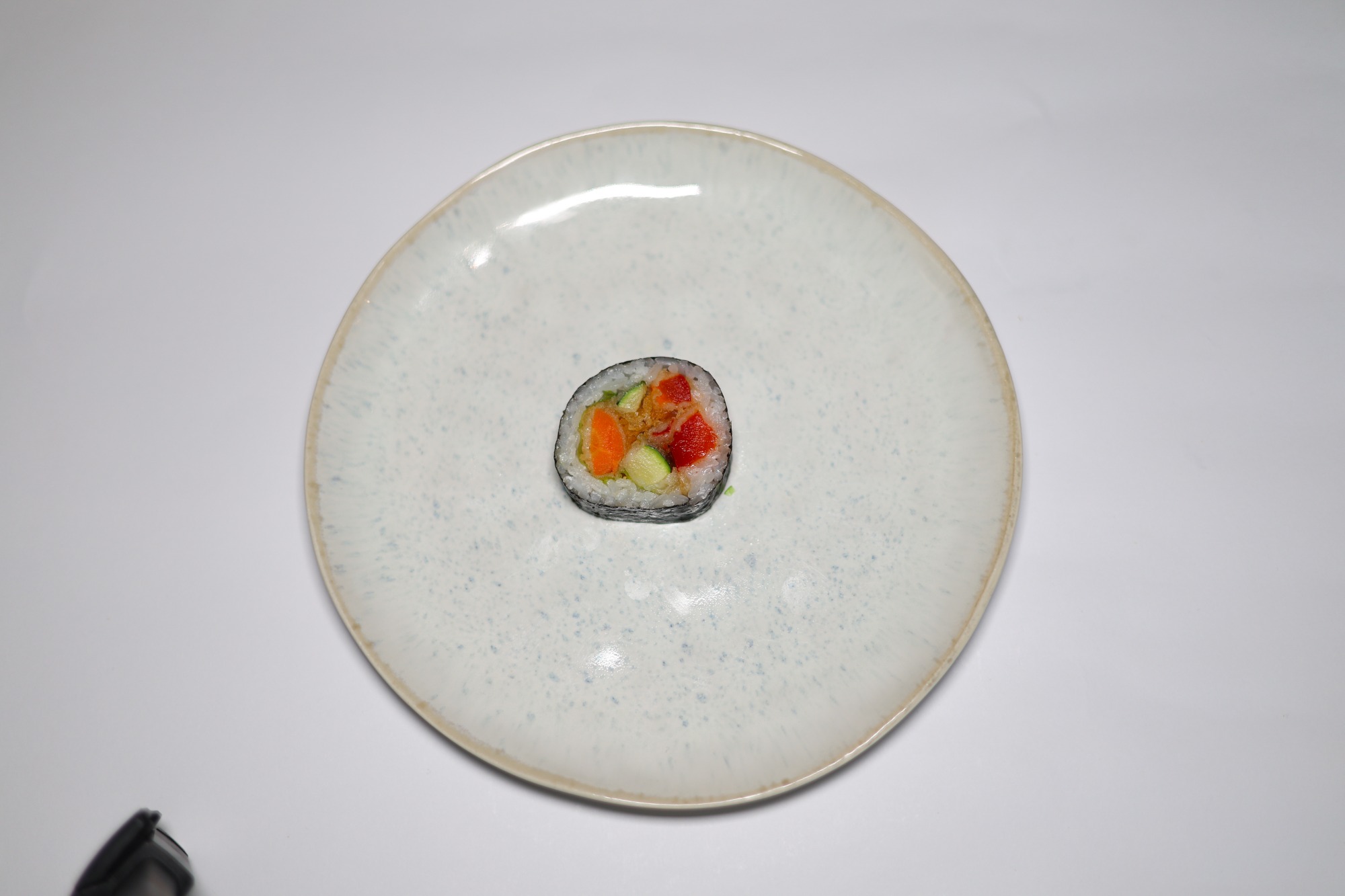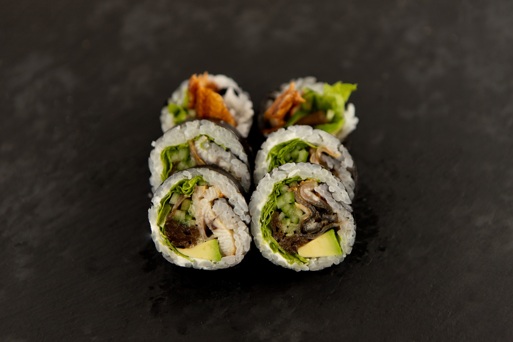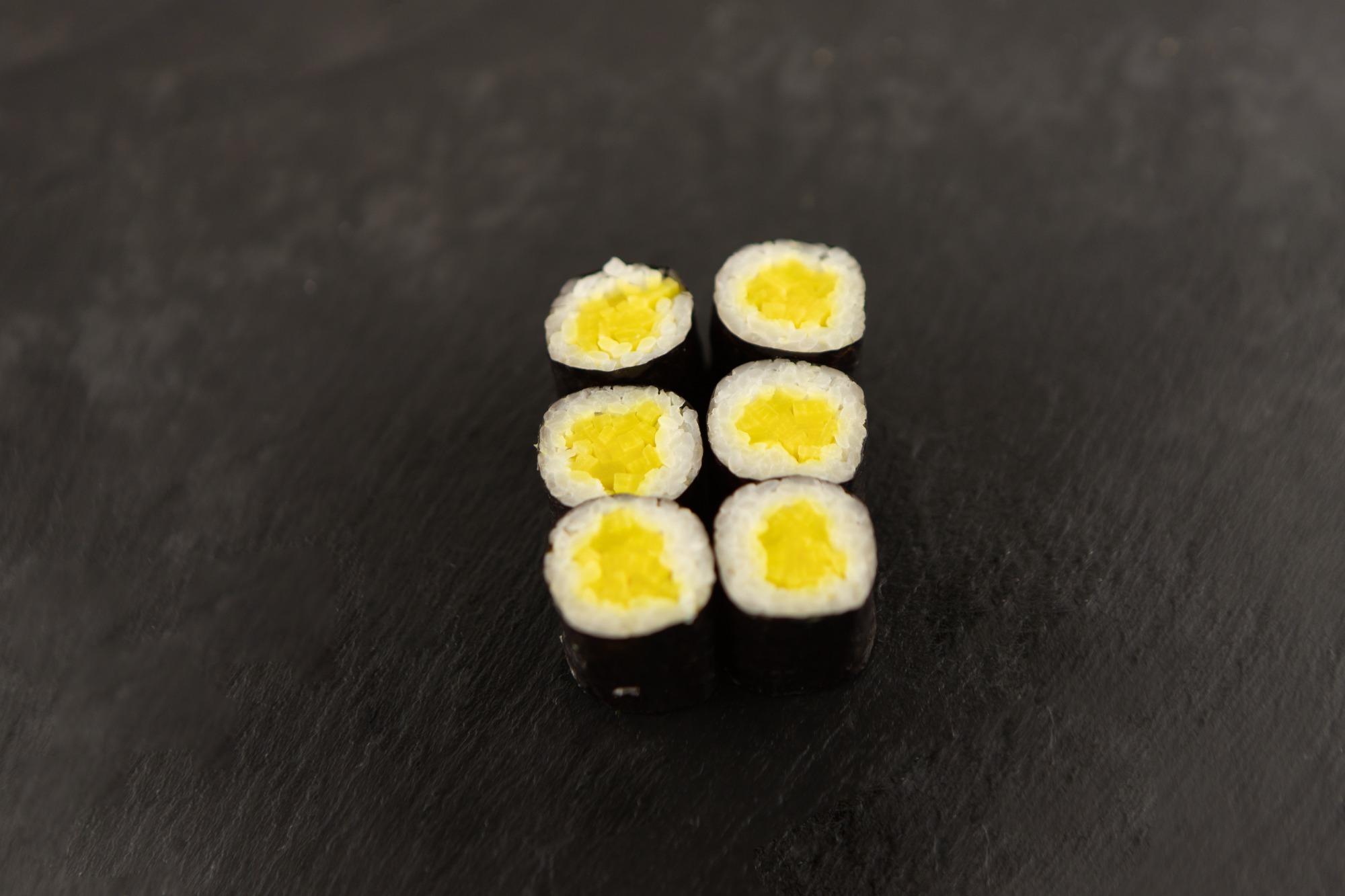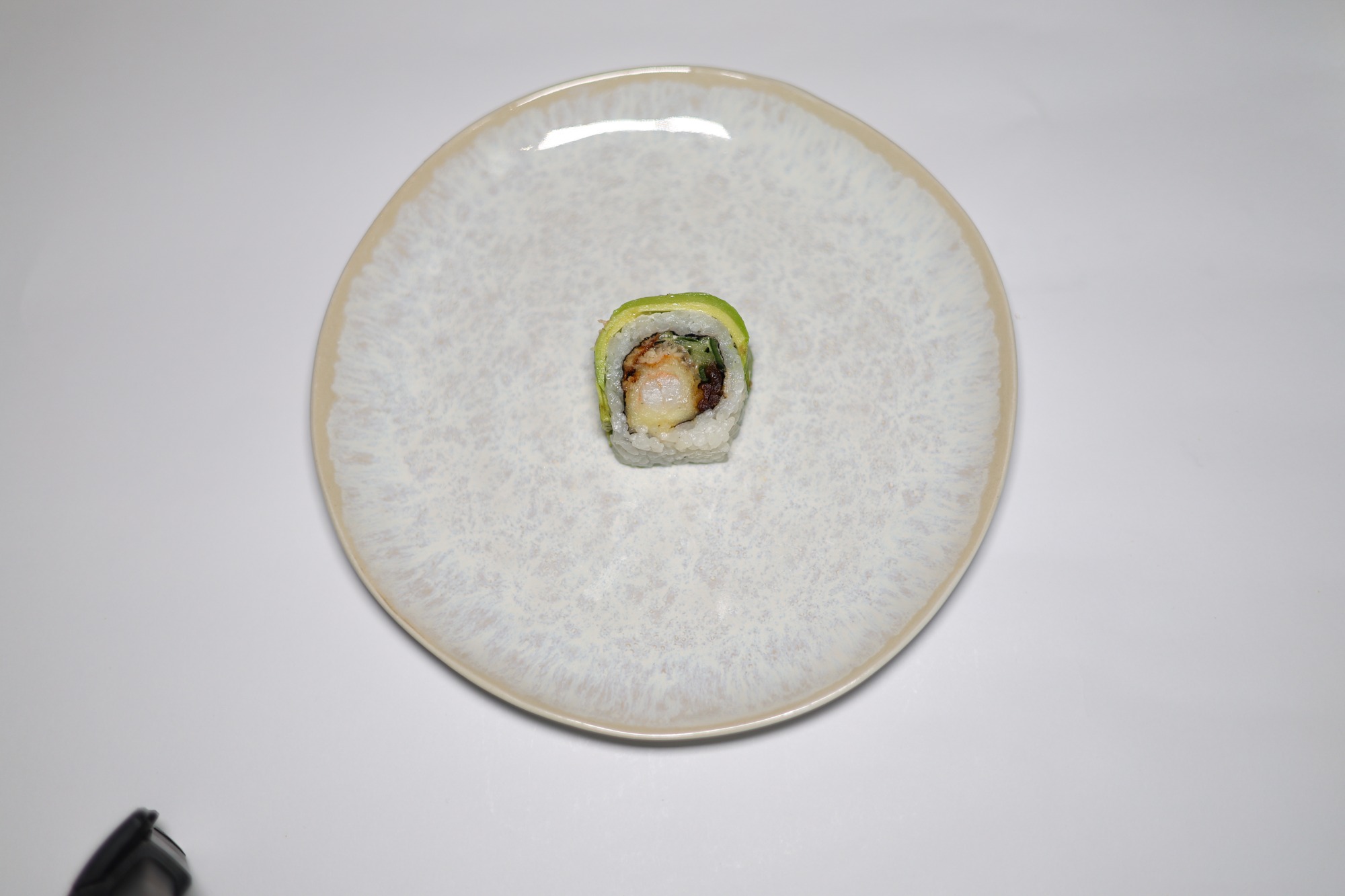 Rolka zawijana odwrotnie, z ryżem na zewnątrz oraz nori wewnątrz, dzielone na 5 szt.