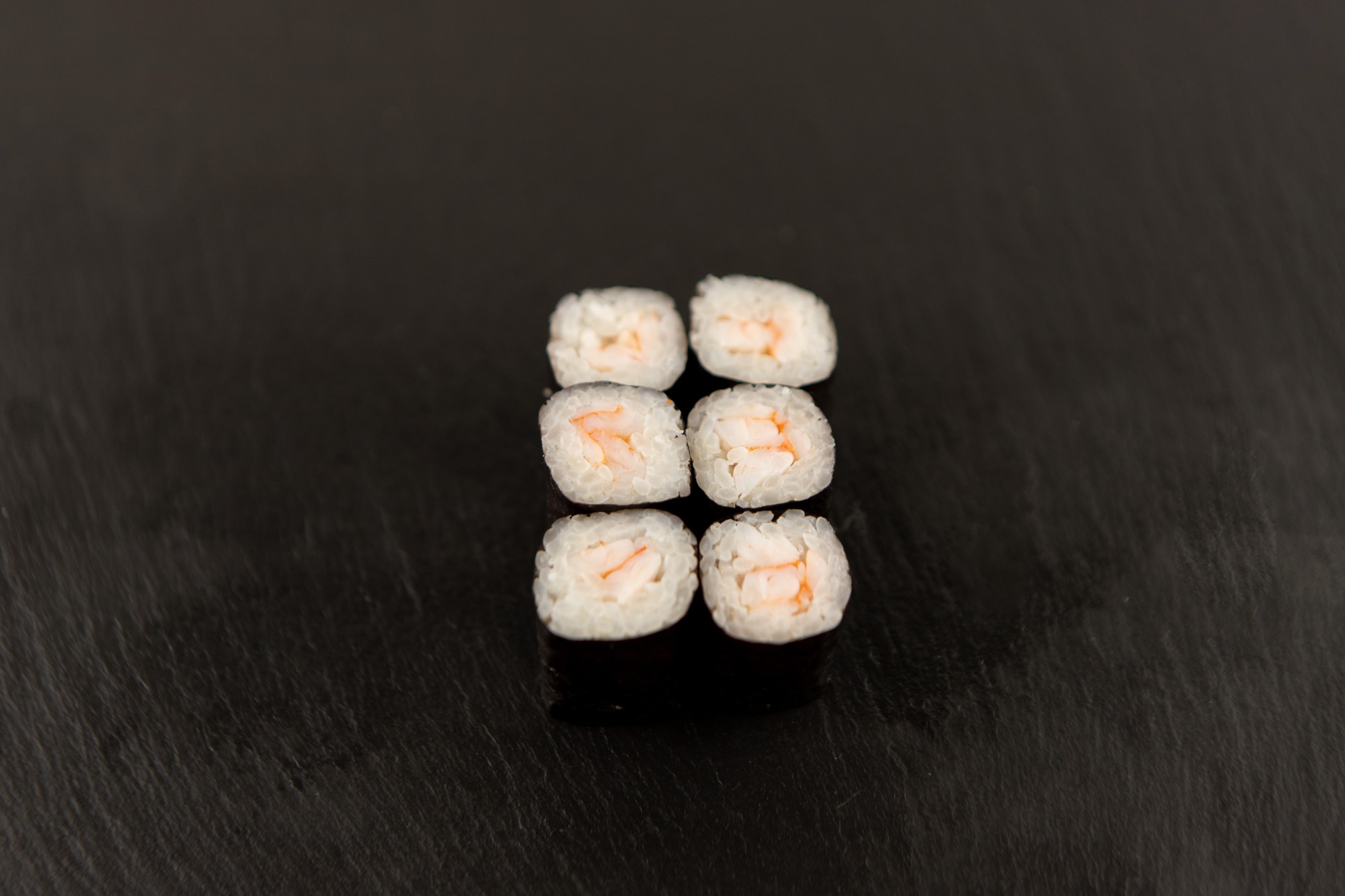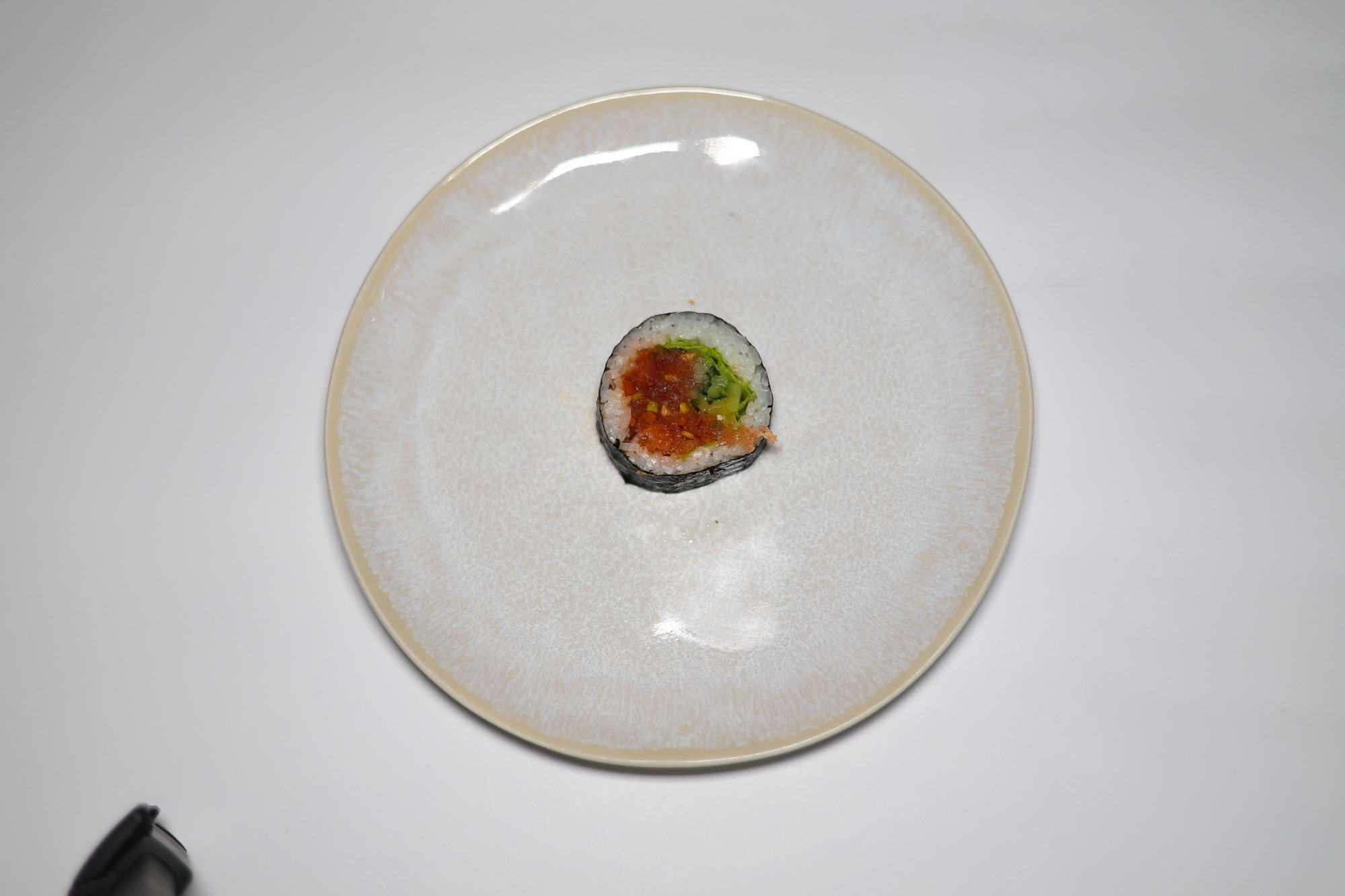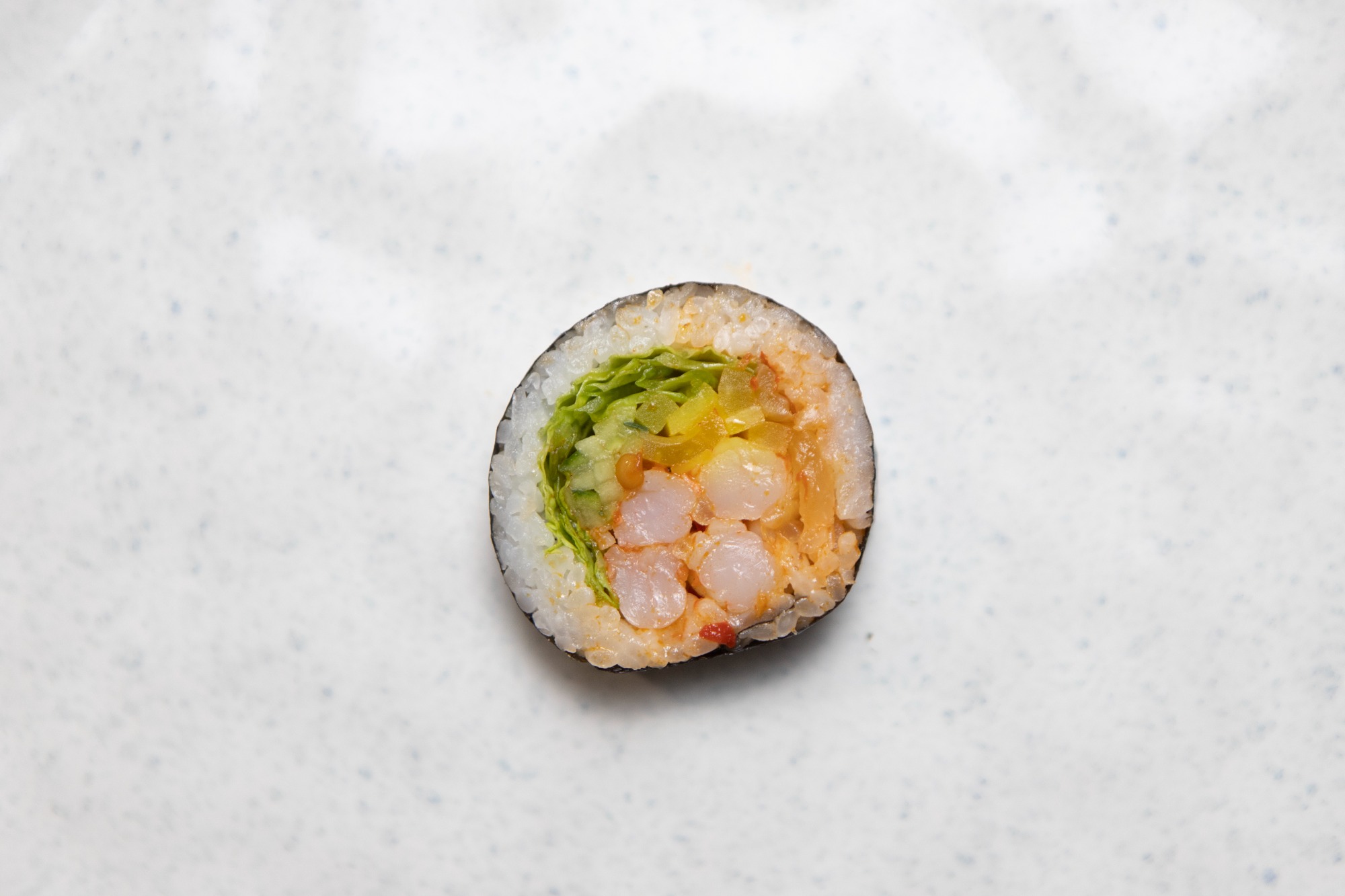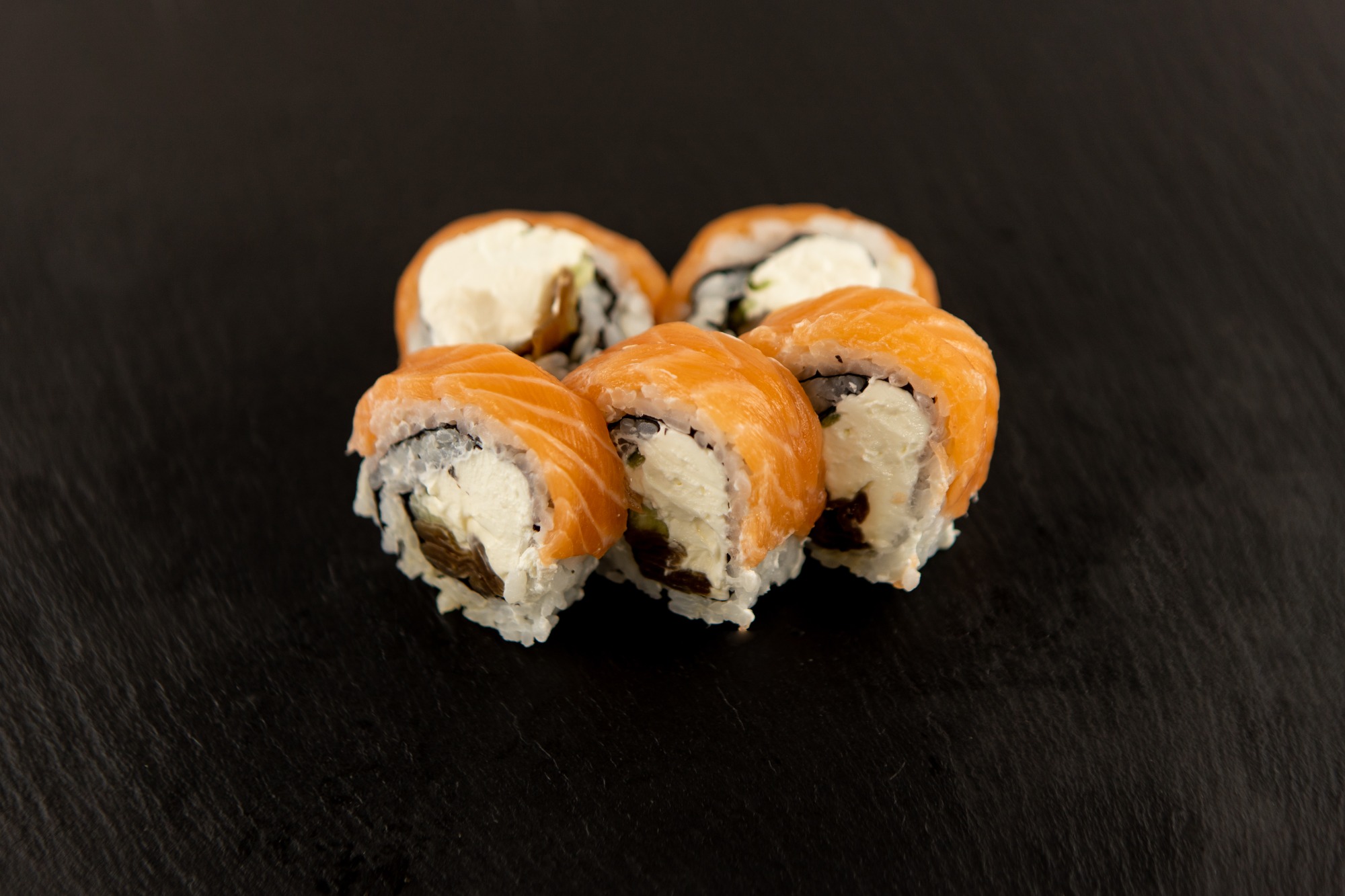 Rolka zawijana odwrotnie, z ryżem na zewnątrz oraz nori wewnątrz, dzielone na 5 szt.