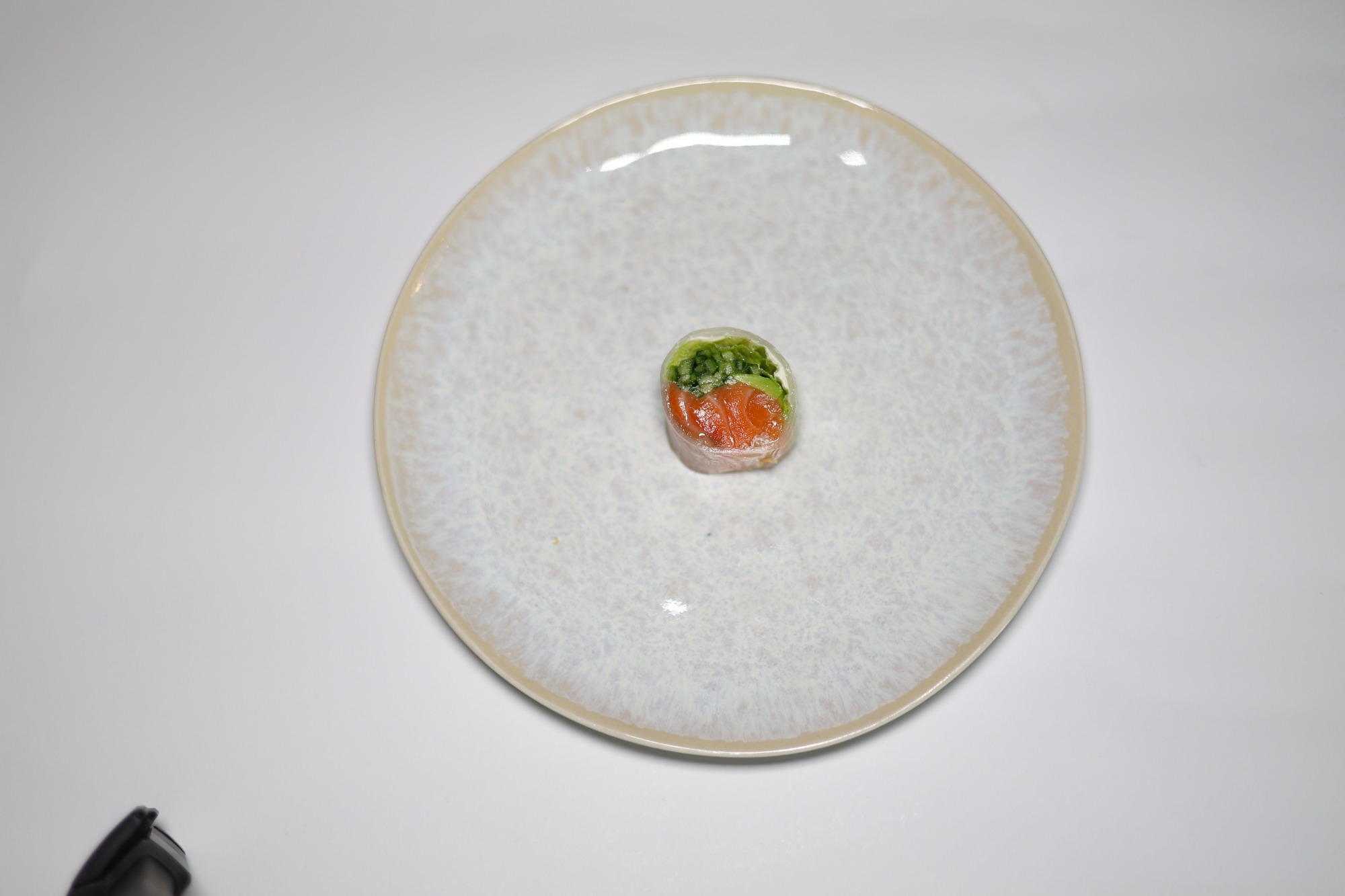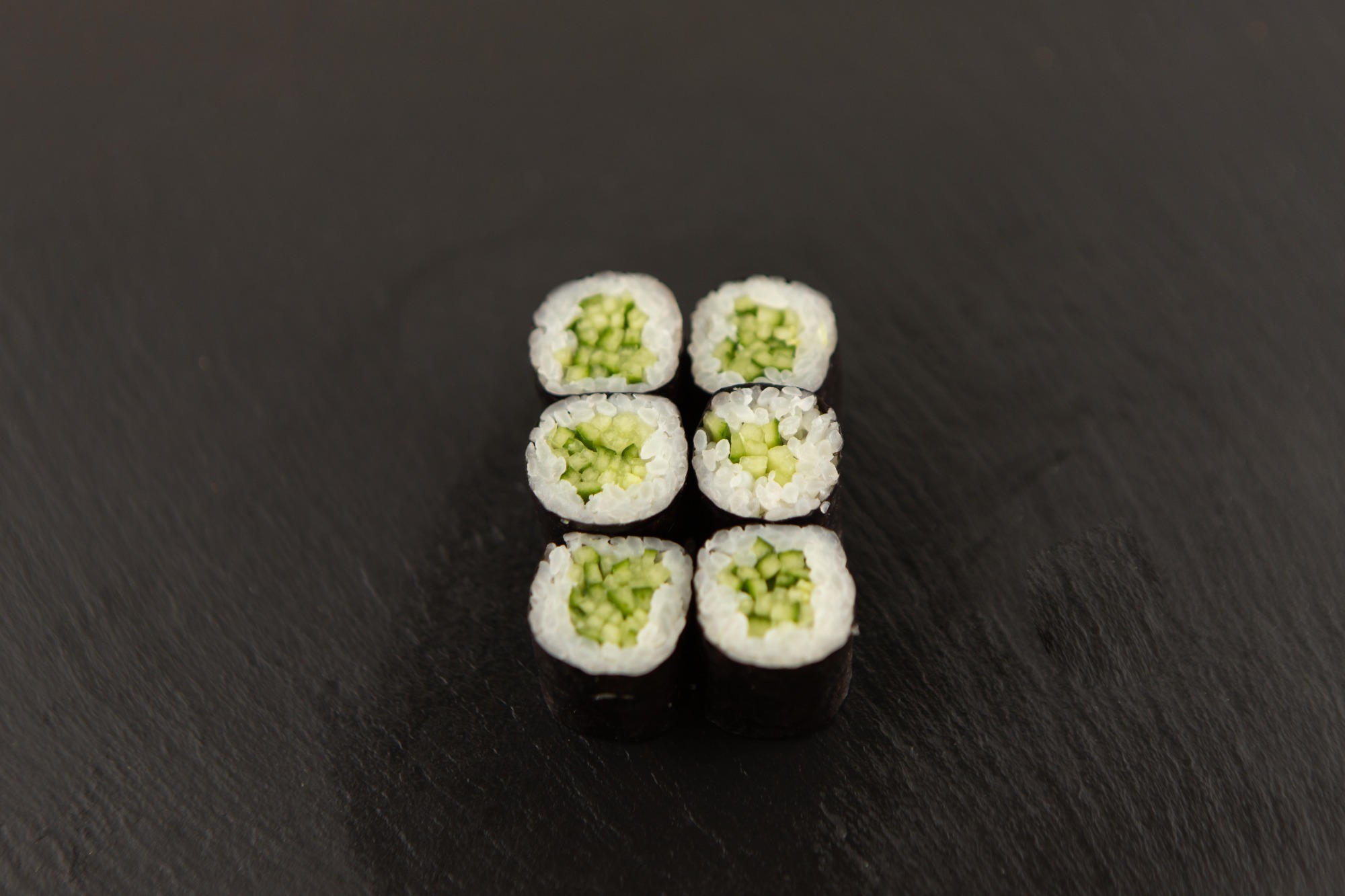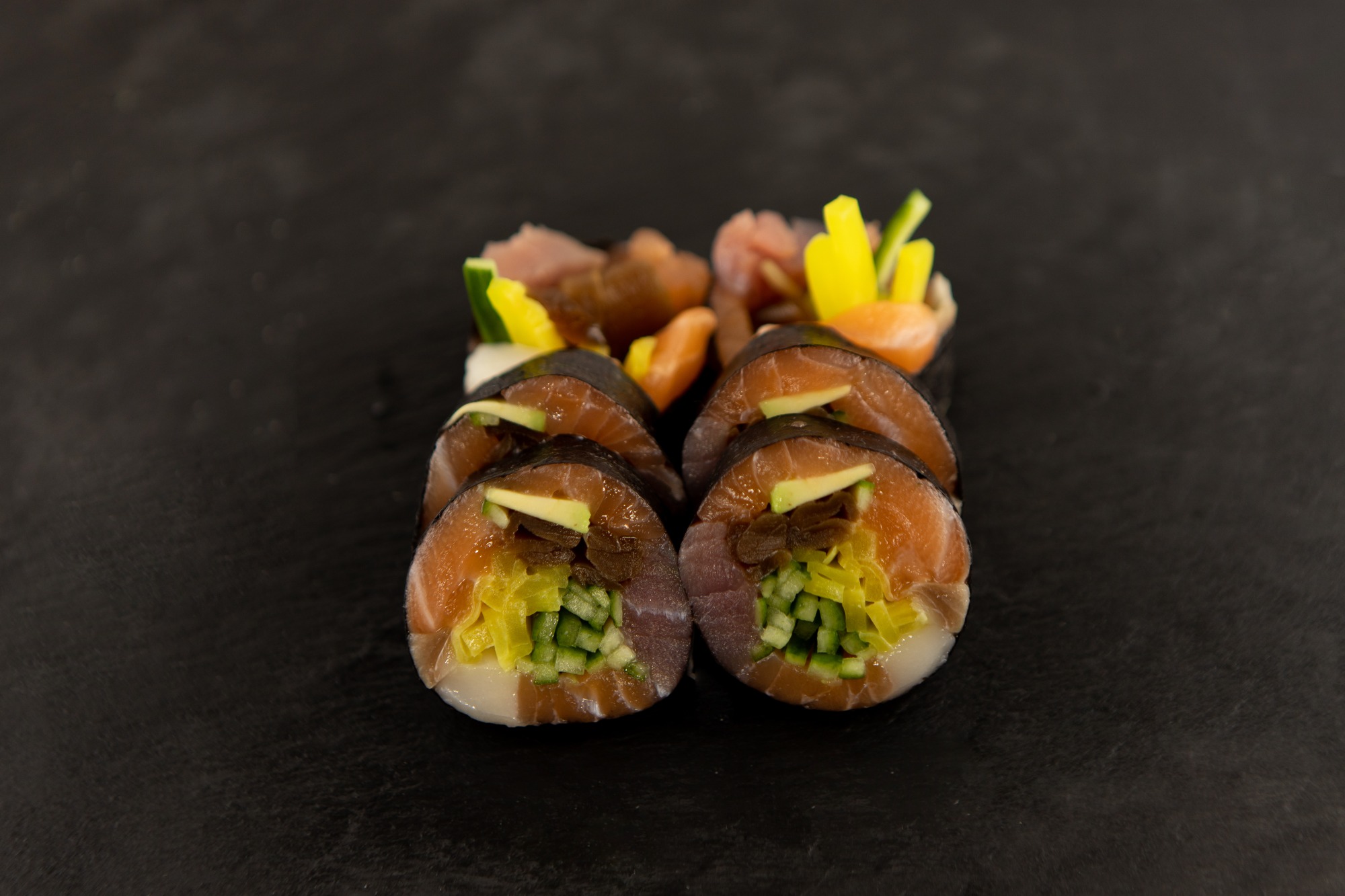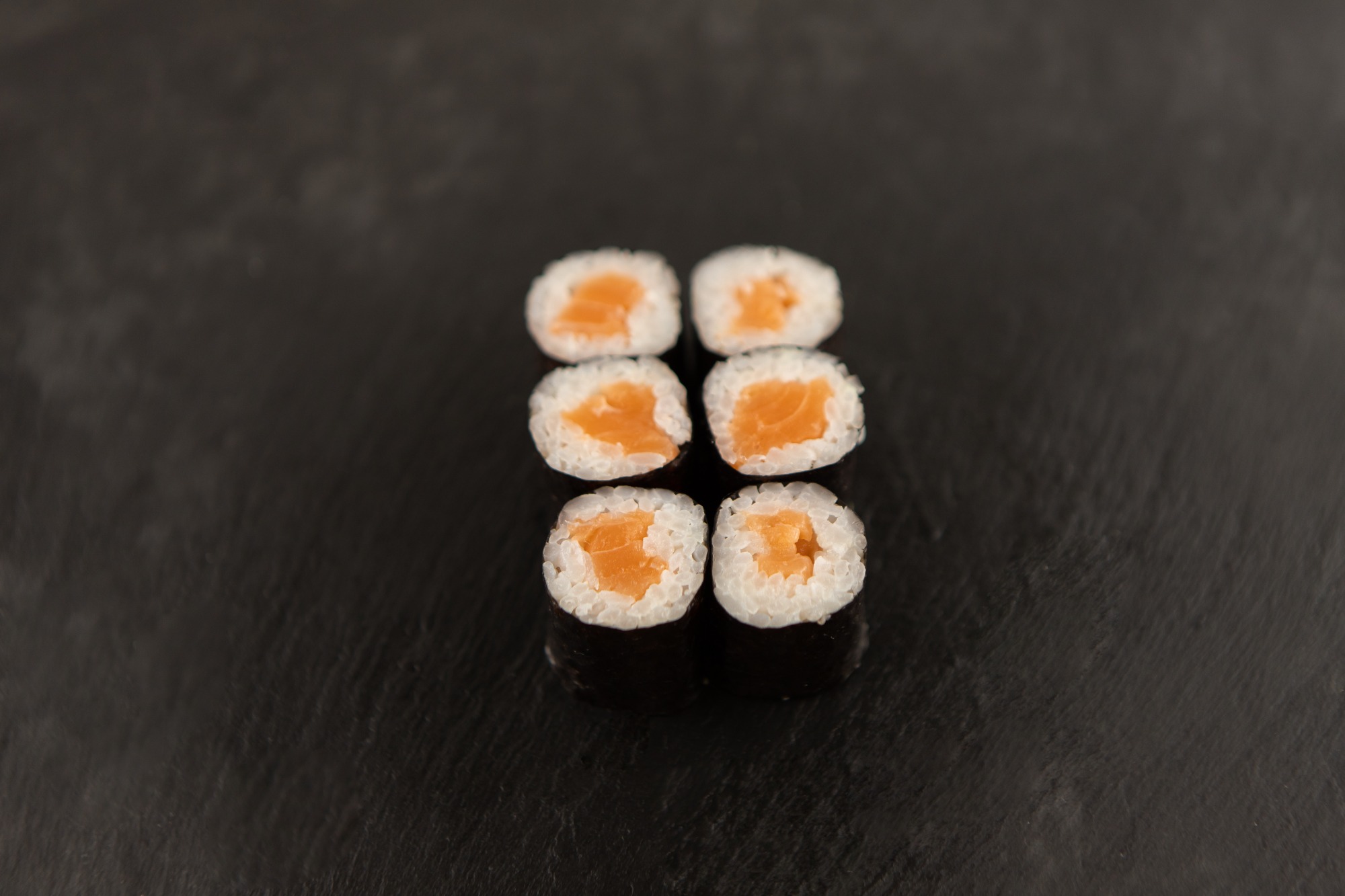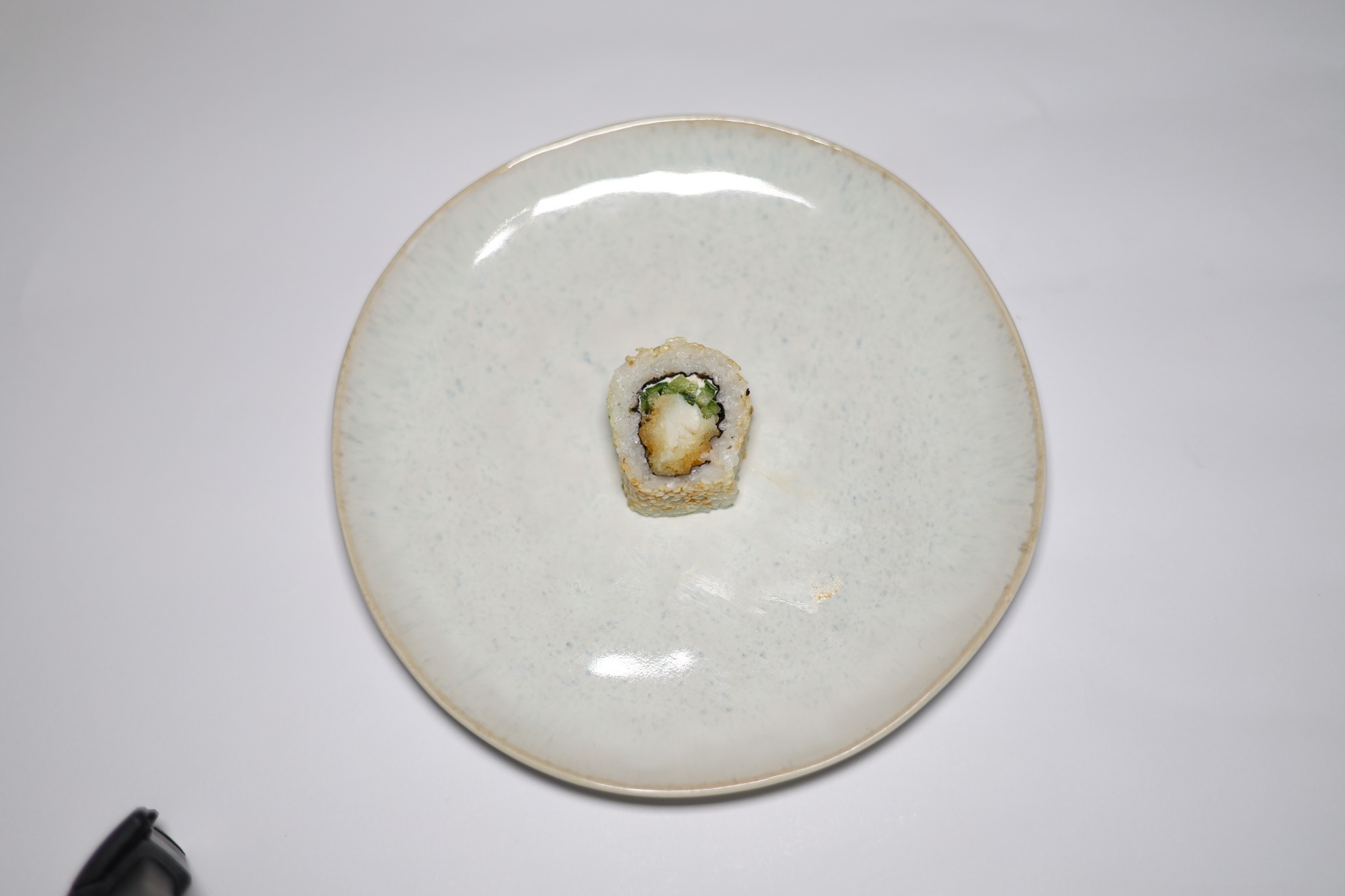 Rolka zawijana odwrotnie, z ryżem na zewnątrz oraz nori wewnątrz, dzielone na 5 szt.
