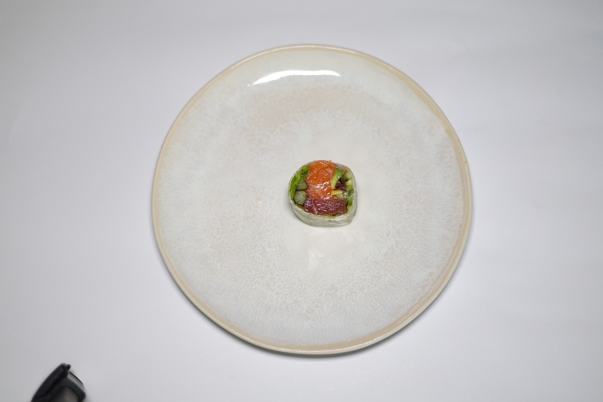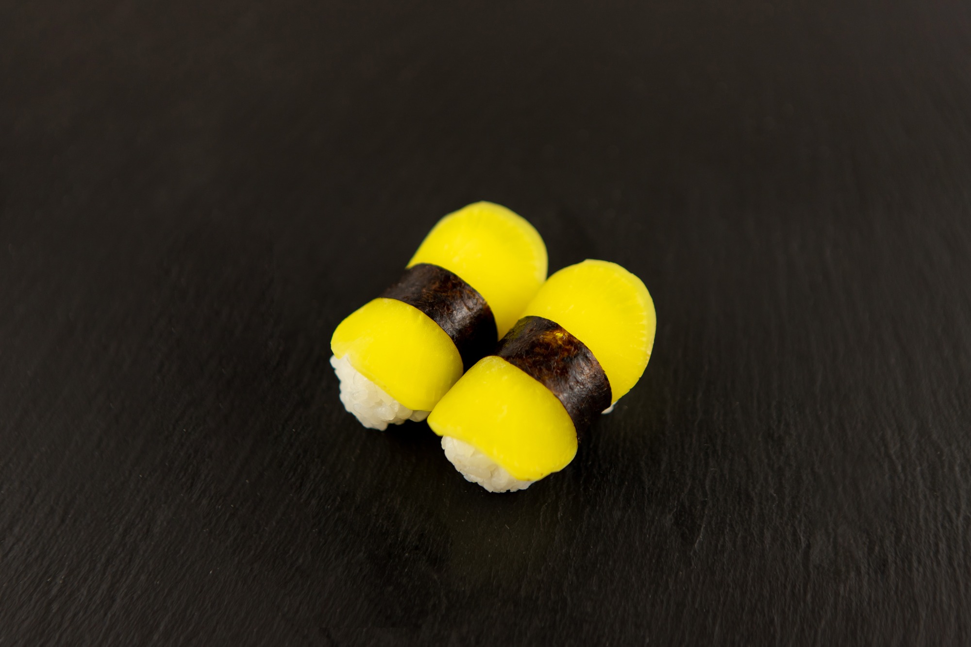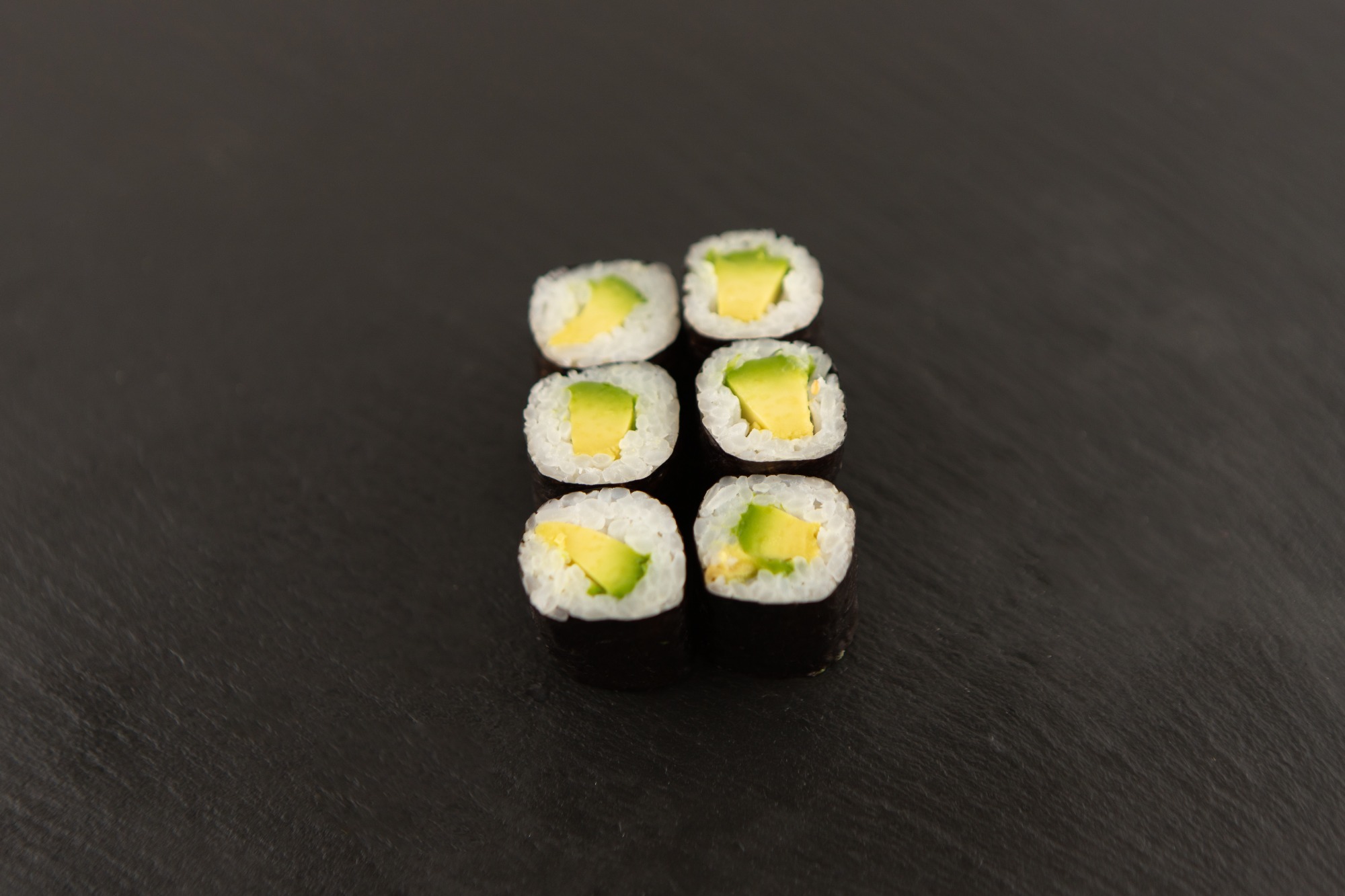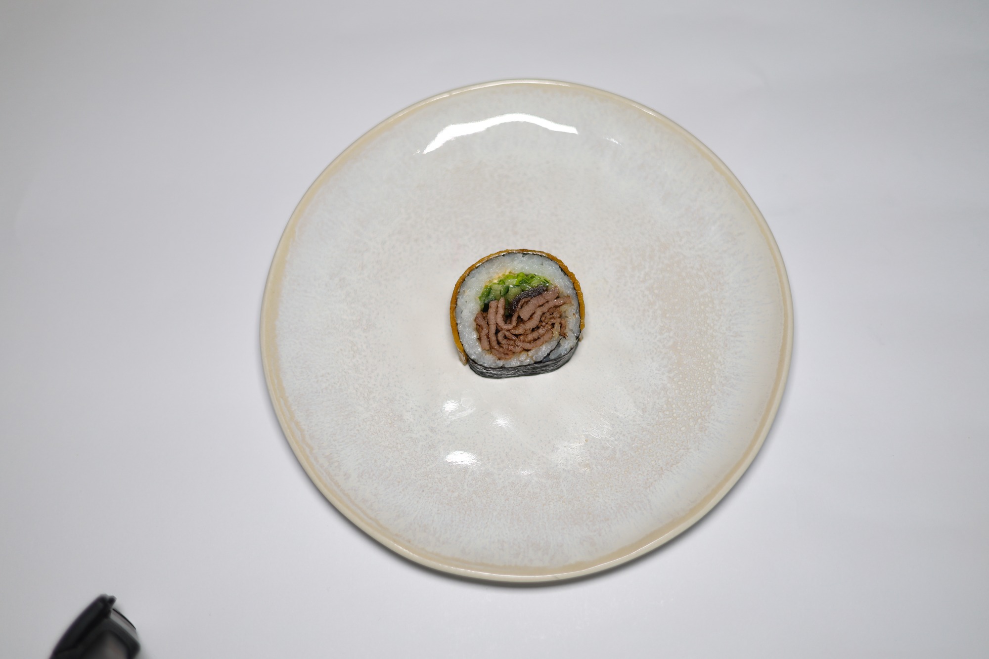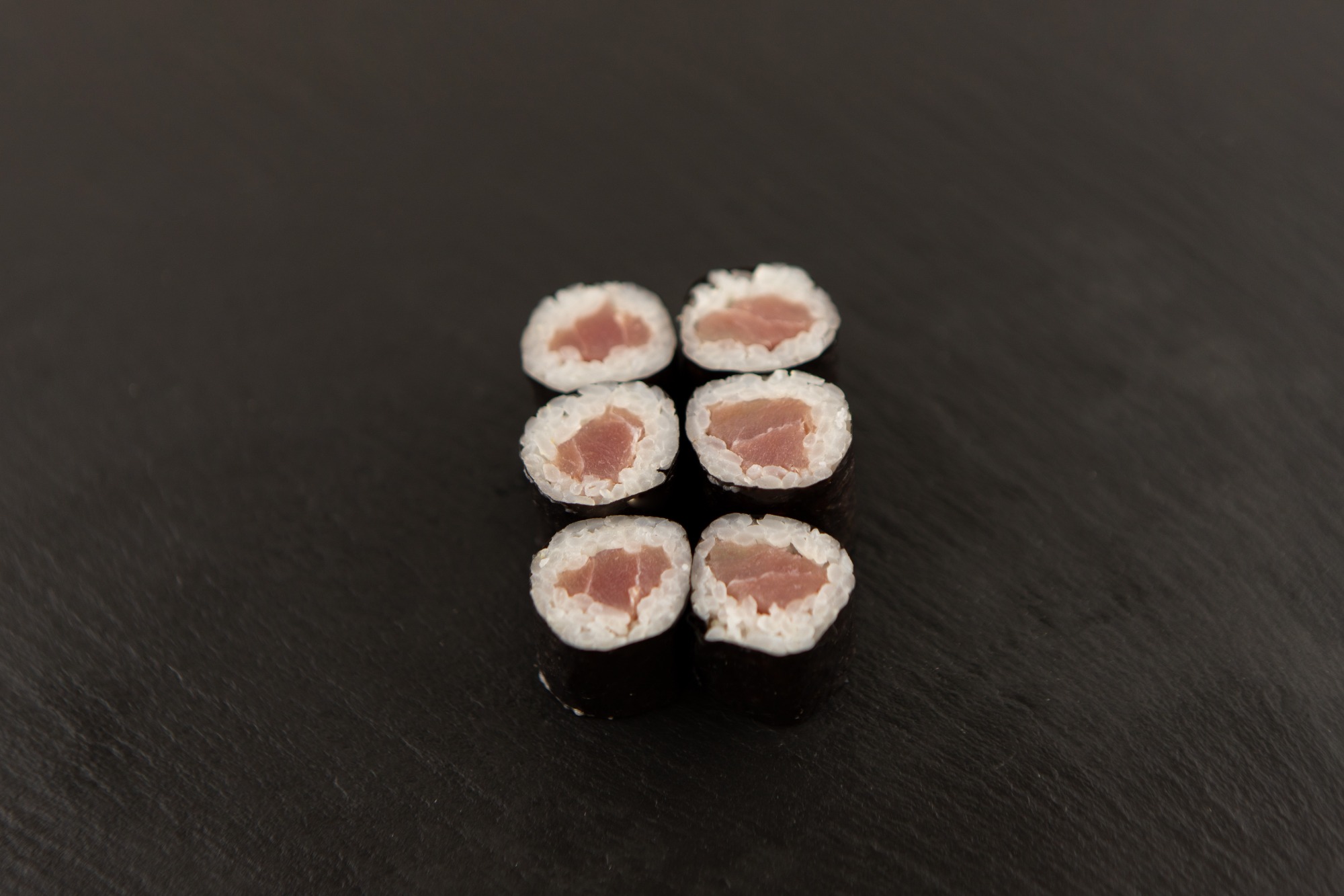 Rolka zawijana odwrotnie, z ryżem na zewnątrz oraz nori wewnątrz, dzielone na 5 szt.