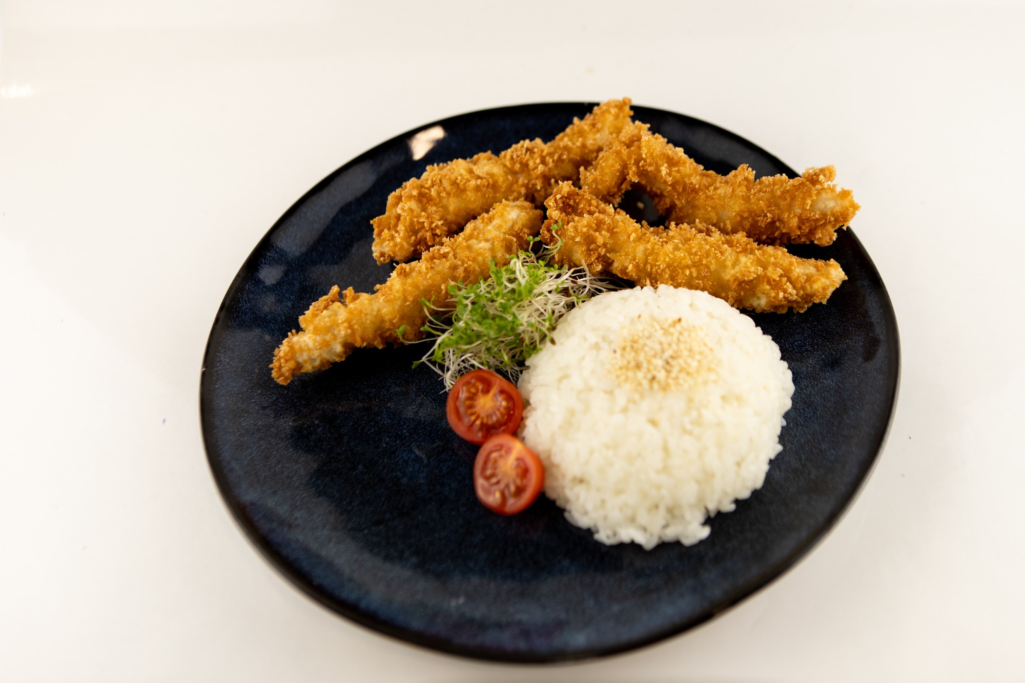 Polędwiczki z kurczaka w chrupiącej panierce panko z ryżem
